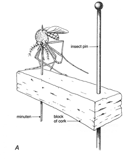 coated entomological pin was used to pin the insect. They are available in various